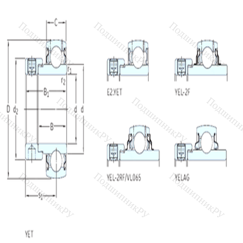 Каковы характерные особенности Подшипник шариковый радиальный YET209-111?