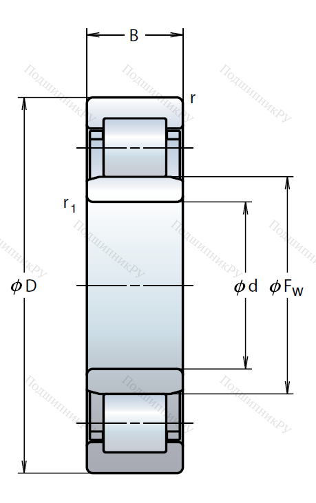 Роликовый цилиндрический подшипник NU 2306 W, это разновидность однорядного роликоподшипника в метрическом исполнении.