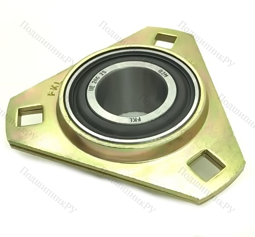 Подшипниковый узел (корпусный подшипник) UED206-2S это разновидность корпусного подшипникового узла в сборе. Имеет фланцевый корпус в форме треугольника с усечёнными вершинами, в котором выполнено 3 квадратных отверстия под крепёж.