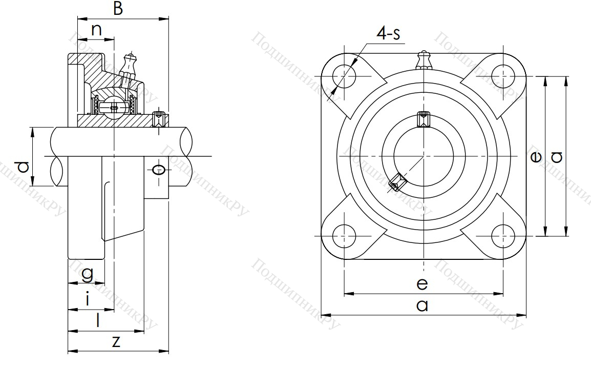 Деталь представляет собой фланцевый корпус из литой стали или серого чугуна, обладающий повышенной прочностью и стойкостью не только к износу, но и к механическому воздействию. Устройство прикрепляется к основе при помощи четырех винтов, для которых в нем имеются специальные отверстия. Имеет сферическую внутреннюю часть для установки подшипника.