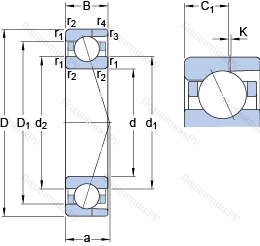 | Номинальная динамическая грузоподъёмность | C | 29.6 | kN | |