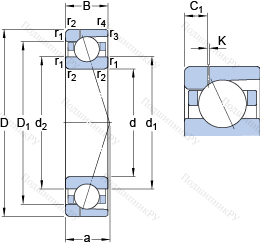 | Номинальная статическая грузоподъёмность | C0 | 34.5 | kN | |